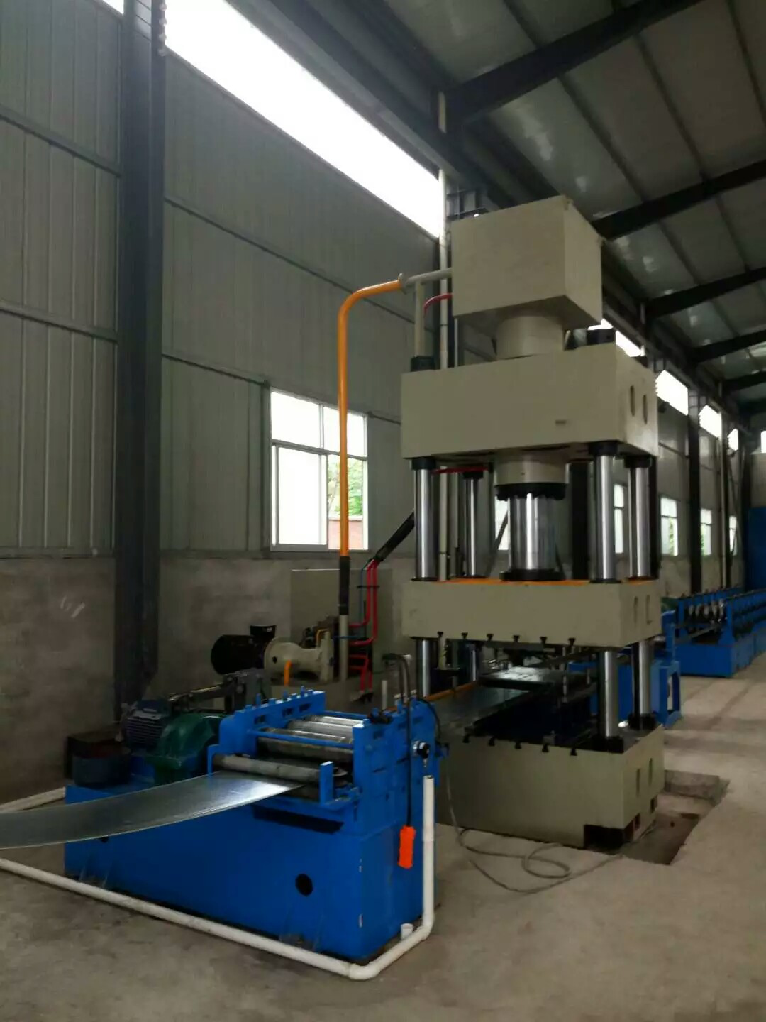 Equipment adopts four-column type, Hydraulic motor power is 22kw, equip one set of punching mould, can choose the hole type according to requirement. Encoder sizing accuracy is 3200±2.0mm; punching length can modify on PLC according to need, and meet manufacture requirement.